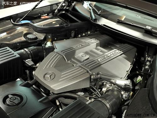 奔驰 SLS AMG 所搭载的纯人手装嵌 AMG 6.3L V8 自然吸气发动机,可输出最大功率571马力,最大扭矩为650牛顿米;传动系统采用全新研发的七前速双离合波箱,FR驱动布局;0-100km/h加速仅需3.8秒,极速317km/h。
