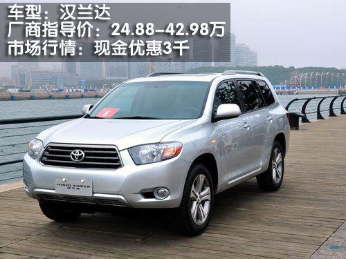 | 汉兰达 2.7L AT豪华版 两驱 | 29.88万 | 29.58万 | 3000元 | 有现车 |