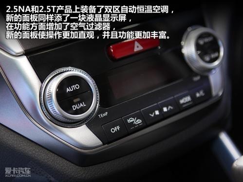 同样在2.5NA和2.5T产品上装备了双区自动恒温空调,新的面板同样有一块液晶显示屏,在功能方面增加了空气过滤器,新的面板使操作更加直观,并且功能更加丰富。
