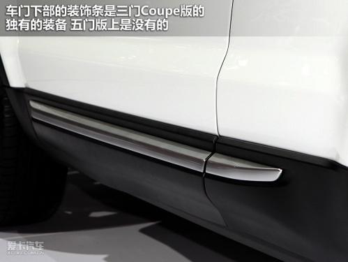车身侧面线条是其设计的一大看点,凸起的腰线挺拔清晰,逐渐上扬贯穿整个车身。前翼子板处的散热口真正发挥作用的面积很小,更多的是为提升美观服务。车门下部的装饰条是三门Coupe版的独有的装备,五门版上是没有的。