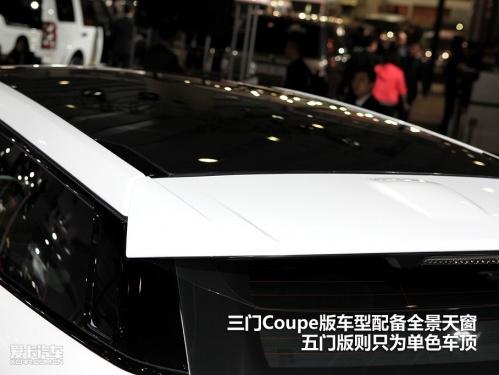 车顶采用悬浮式锥形设计,此处对整车展现的姿态起到了决定性的作用,令其风格与一些运动型跨界车型异曲同工,三门Coupe版车型配备全景天窗,五门版则只为单色车顶。