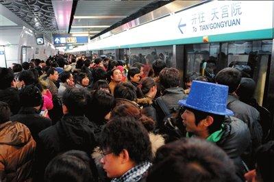 昨天晚高峰,地铁4号线内出现拥堵。图/CFP