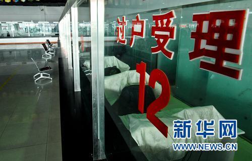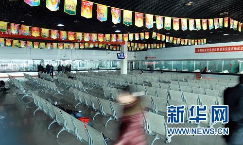 12月24日,北京市旧机动车交易市场的过户业务大厅内空空荡荡。当日,《北京市小客车数量调控暂行规定》开始实施,北京车市在经历23日夜场的疯狂后,迅速降温。由于相关细则尚未出台,北京市旧机动车交易市场已经暂停受理过户业务。新华社记者 张宇摄
