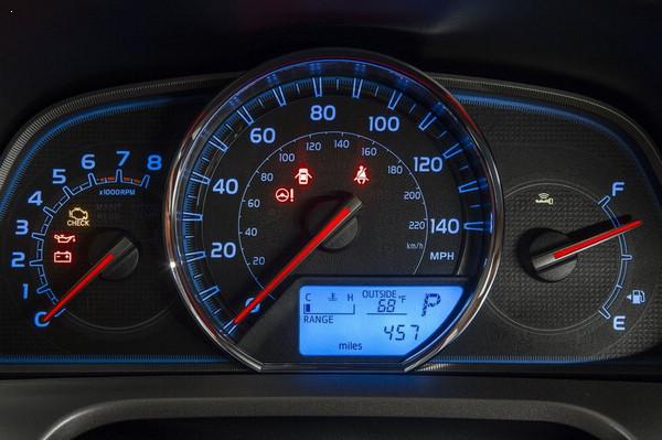 相对于中控台和方向盘,仪表盘变化最小。设计简约的仪表盘除了应有的转速、车速水温、里程等信息,其他功能一概没有。相比内饰,仪表盘在档次感的营造上显得差强人意。