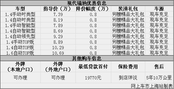 上海:现代瑞纳优惠让利0.8万元 另赠精品礼包