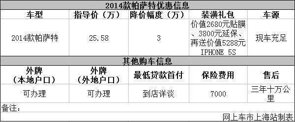 上海:2014款帕萨特综合优惠4.18万 现车充足