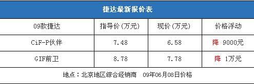 虽说捷达已经上市多年,但是凭借着非常不错的口碑和较低的价格,使得捷达的销量一直都非常高,4月份销量高达2.15万辆,排在国内乘用车销量榜第三名。昨日,我们从北京地区一家一汽-大众汽车综合经销商处了解到,目前捷达伙伴的价格再次下降,仅售6.58万元,比一个月前降低了2000元,性价比非常不错。以下是09款捷达最新报价表: