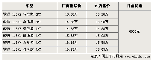 据4S店销售人员介绍:目前骏逸无现车,全部需要预订,订车周期为1个月左右。由于骏逸销量不佳,目前优惠幅度达6000元,不送装饰。