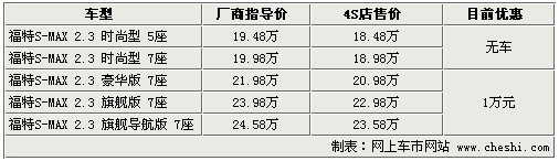 据4S店销售人员介绍:目前除时尚版车型无车外,其它3款车现车较充足,2.3升豪华版和旗舰版是新推出车型,比原来老款车型多项天窗配置,但优惠幅度较之前有所减少,目前全系优惠1万元。车辆颜色方面,银色、黑色现车较多,如果感兴趣的消费者可到店内洽谈。如预订其他颜色车辆,等待时间在1个月左右。