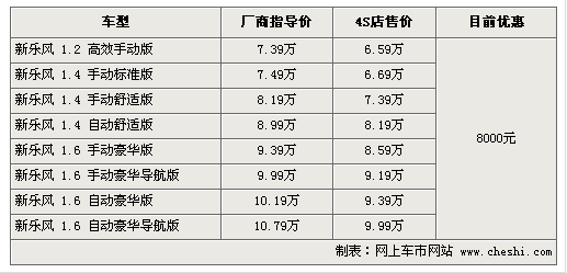 据4S店销售人员介绍:目前新款乐风最高优惠达8000元,整体而言现车较充足,但1.2升车型需要预订,预定周期为1-3周。由于1.2升车型动力较弱且性价比并不高,所以销量较少自然车源也不充足。1.4升排量车型是乐风销量主力,车型货源充足,有兴趣的朋友可以到店洽谈。