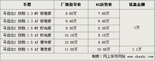 笔者从长安马自达经销商处了解到,目前两厢车最高优惠可到1万元,其中标准版和超值版能优惠8000元,这两类型车型相比销量较多,尊贵版和豪华版优惠1万元,只有黑色和灰色现车,受大众喜欢的红色等车型需要等待10天时间才能提车,订金为1000元。
