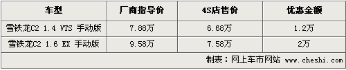 笔者了解,目前C2车型由金泰开元4S店独家包销,其他经销商处都没有现车。由于定价比世嘉车型稍高,关注C2的消费者减少。现在购车最高可以优惠现金2万元,现车有金色、黑色等可选。