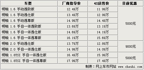 据4S店销售人员介绍:目前明锐全系最高优惠9000元,1.6升及1.8TSI车型优惠减少,尤其1.8TSI车型由原来的8500元降至5000元。2.0升目前优惠9000元,优惠幅度很大,并且2.0升车型有现车,颜色包括银色、灰色车型。1.6升车型全系现车少,如需预定最短等待1个月,最长需等3个月时间。目前1.6升车型优惠达5000元,1.8TSI的两款车型优惠5000元。如在店内做装饰还可打8折,虽然折后装饰价格仍有些偏高,但产品质量可以保证。