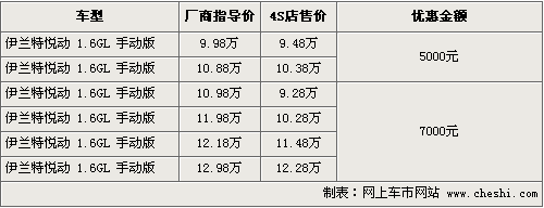 北京现代悦动自上市以来一直深受消费者欢迎,低廉的价格定位,无论从空间还是配置上都满足了一般家庭的使用需求,在A级车市场连续数月蝉联销量榜冠军。目前悦动的优惠在5000元-7000元之间,具体行情如下: