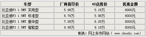 作为比亚迪汽车旗下的重点产品,比亚迪F3在今年又推出了智能白金版,新款车型增加了无钥匙系统、智能娱乐通讯系统等高端配置,使这款自主品牌家用轿车的竞争力更加突出。网上车市网站了解到,虽然比亚迪F3智能白金版上市时间不长,但目前优惠幅度有所提升,经销商处全系可给出8千的优惠。详情如下: