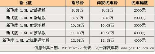 节日的喜庆气氛慢慢退去,但车市的火爆程度却依旧。近日笔者从北京地区广汽本田4S店获悉,飞度车型目前仍然货源紧缺,现在预定最高可享受4000元的优惠,详细价格见下表: