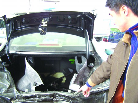 当着记者面,丛经理解释说,“ 后围”是中空钢结构,和车体焊接在一起,外面是保险杠,不是易损件,因此公司并无备件。关于于进英的那辆待修车,其他配件都有,就是没有这个“后围”。2日上午10时,上海方面就此刚与他沟通过,他也没得到任何承诺。