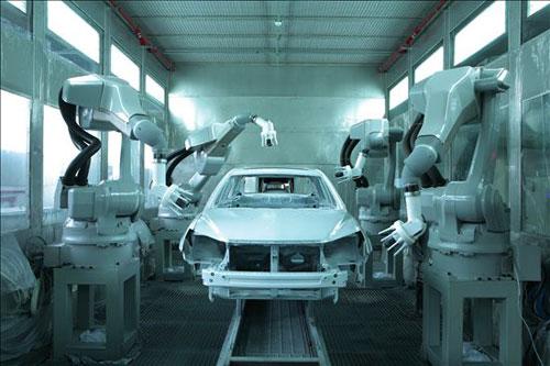 涂装车间仅从设计理念就能看出它的与众不同。帝豪积极响应国家“节能减排”号召,将绿色、环保、节能的理念渗入到这个工厂设计的各个环节,尤其在涂装工艺设备上,采用喷漆采用的是符合环保理念的德国水性涂装工艺——喷涂机器人和自动调漆、输漆、喷漆、换色的调输漆系统,从而保证了漆面的均匀和车身表面的光泽度和鲜映性,涂料利用率也可达98%以上。帝豪EC718/ EC718-RV产品所用的漆是水性漆,非常环保,目前国内只有3至4家合资厂采用,它的溶剂是水,对环境没有一点污染。
