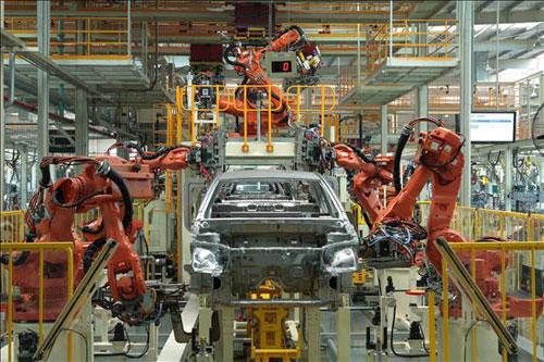焊装车间的机器人也让我们眼前一亮。采用的设备主要有瑞典ABB公司生产的点焊机器人、涂胶机器人,日本大福生产的摩擦式车身储备线、螺母自动输送机等世界先进的设备。工作人员介绍,总焊线是柔性化生产线,一条线上能同时生产EC718/ EC718-RV两个车型。焊装工艺的关键质量控制点的焊接都是由ABB提供的焊接机器人来完成的,所有夹具都是日本富士公司生产的。在这个车间里也看到了全国精密度最高的三坐标测量仪,是从意大利进口的TORO测量机。它集开发、检测、统计分析于一体,是设备、夹具、检具、单品零件、分总成零件及白车身总成各检测系统的连接纽带,确保了生产制造过程的整个系统数据的统一、精准,大大提高了整车的质量检测的精准度,投入使用如此高级的国际化检测设备是一个汽车厂家高度重视产品质量的表现。
