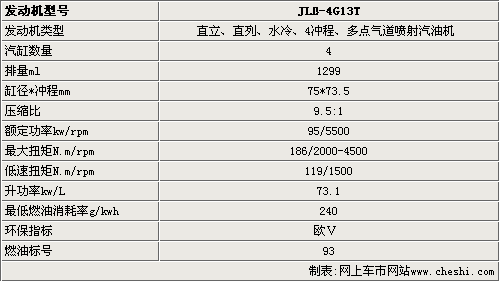 吉利即将推出的这款4G13T发动机采用废气涡轮增压技术,并配备进气智能连续可变气门正时系统,也就是我们常说的CVVT技术。这款发动机的进气歧管采用全塑材质,并采用电子节气门和链齿正时驱动。虽然4G13T发动机的排量仅为1.3L,但最大功率达到了95kw,而且在2000转的时候即可有186N.m的扭矩输出,还拥有119N.m/1500rpm的低速扭矩,使这款车的提速相当迅猛。另外,4G13T发动机达到了欧Ⅴ排放标准,满足欧洲市场的需求。