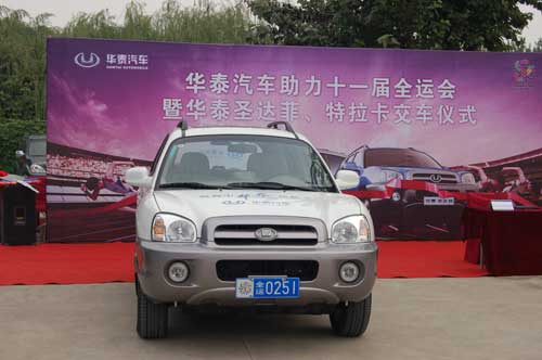据悉,第十一届全运会开幕式将于2009年10月16日举行,华泰汽车交付的22辆华泰圣达菲和华泰特拉卡将从即日起往返于各大赛区,为一万多人的开幕式和三千多人的闭幕式的排练、演出工作提供全程服务。
