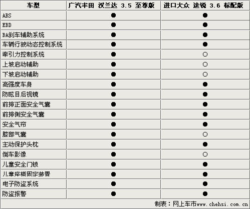 2009年5月25日,广汽丰田的首款SUV车型汉兰达正式下线,并宣布其正式上市。国产汉兰达车型分为2.7和3.5两个排量,共计10款车型,售价为24.88万元-42.98万元。汉兰达在外型设计上突破了传统的SUV设计风格的束缚,注重内在的力量而非粗放的外表,在坚韧的躯壳之上更追求智能化,同时它也是丰田在中国地区投产的首款中级城市SUV车型。那么它的市场竞争力究竟如何?和市场上其它中级城市SUV车型相比究竟有那些优势呢?为了能让您可以更加清楚地了解这款新车,我们选择了市场销售的进口大众途锐与其来做一个全方位的对比。这两款车型无论从车身尺寸,还是动力系统均属于一个级别的SUV车型。