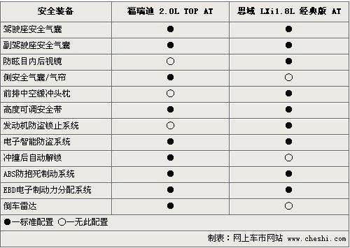 福瑞迪2.0排量顶配与思域1.8经典型都配备了正副驾驶安全气囊,ABS+EBD都成为两款车的标配。由于是顶配车型,福瑞迪增加了车辆的侧安全气囊和气帘,同时倒车雷达、冲撞后自动解锁等都有装备,在实际使用过程中更方面,更安全。思域1.8经典型虽然未配备倒车雷达,但配备的发动机防盗锁止系统为车辆安全提供了有效的保证。