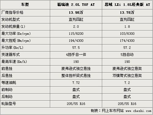 福瑞迪2.0顶配和思域1.8经典型两款都采用了直列四缸的引擎,但排量上不同,同时两款车的最高时速都达到了190KM/h,我们对比两款车的升功率发现,福瑞迪在动力输出方面稍优于思域。在变速箱方面,福瑞迪2.0顶配车型搭载了4挡手自一体变速箱,而思域采用的是5速自动变速箱,操控更顺畅,相对也会更省油一些, 驾驶者能够享受到驾驶的乐趣。另外两款车均采用了前后盘式刹车,这样散热会更快一些,轮胎型号上两款规格均为205/55 R16。