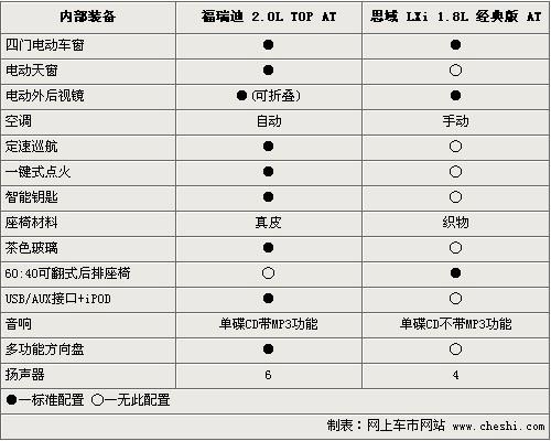 在内部装备上,两款车各有特点。四门电动车窗、电动可调外后视镜均为两款车标配。由于福瑞迪是顶配车型,所以定速巡航、真皮座椅、自动恒温空调、电动天窗、智能钥匙等配置较为齐全,而一键式点火在同级车车型中也比较少见。但单碟CD、后排座椅不可调相比缺少了一定的档次。思域1.8经典型虽然并未配备天窗,座椅为织布材料,后排座椅没有带中央扶手,但是后排座椅可以60:40可调,这样整车在空间的灵活性上就比较大,相比更加方便家庭使用。