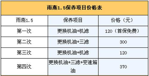 说明:由于各地工时费标准不一,同时备件价格也会有所差异,因此不同地区的保养费会有所差异。另外,当车辆的行驶里程较长时还需要进行更换正时皮带、刹车片等额外的保养项目,此费用需根据车况另行计算。