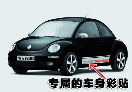 除了颜色上的差别,新甲壳虫BlackOrange特别版在车门下方还新增了专属的车身彩贴,彰显独特的个性。17英寸五辐合金轮毂也是专属的配置之一,与普通车型上所配备在造型上略有区别。