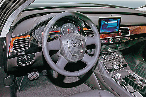 新一代奥迪A8的内饰也进行了重新设计,其最大的特点是仪表板时速与转速表的中间区域应该会采用全新的多媒体显示界面。其次,将采用升降式的LED屏幕设计。第三代MMI系统也体现了奥迪在人机交互上的科技领先标志。