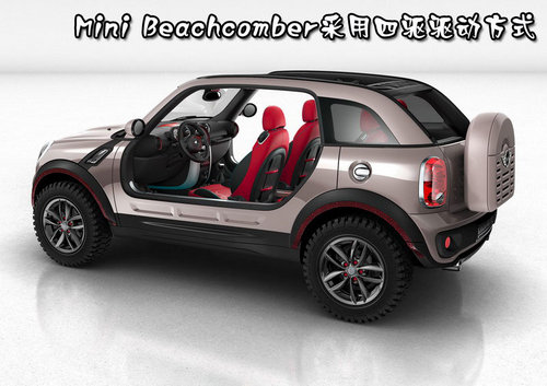 Mini Beachcomber采用了四驱式的驱动形式,并且底盘被加高,另驾驶它的人不用担心在恶劣的道路上出现“瘫痪”现象。Mini Beachcomber车身使用大量轻量化部件以减少自身车重,并在一定程度上降低了车身重心。