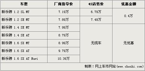 据北京雪佛兰经销店销售人员介绍,雪佛兰新乐骋分为1.2L、1.4L、1.6L三种排量,售价区间为7.19万元-10.39万元。近期购买新乐骋只能够买1.2L排量的车型,并且购买新乐骋的消费者可以得到现金4000元的优惠,但是现车比较紧张,数量较少。1.4L和1.6L排量均没有现车,所以不再此次优惠的队列中。