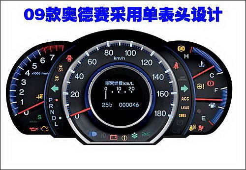 09款奥德赛的仪表盘采用了新颖单表盘设计,转速表、水温表分列主表盘两侧。这款自发光仪表盘能保证消费者在夜间行驶时,可以清晰的了解爱车状况。