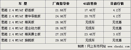 作为一款中级商务车,新君越在配置以及空间有一定的特点,它装备了强大的智能中文语音导航系统,三音源分控式DVD剧院系统以及方向盘控制的车载蓝牙电话系统充分考虑到了商务人士的乘坐需要。而即将上市的新款君越在外观上的全系升级又让消费者重新认识到君越的独特魅力。目前,笔者从别克经销商处了解,新款君越已经开始接受预订,老款优惠增加,具体行情如下: