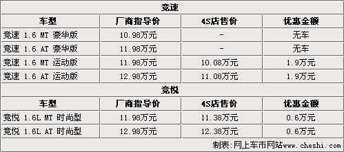 青年莲花竞速从上市后已经有两次官方降价,总降幅达两万元。据青年莲花4S店销售人员介绍,竞速目前只有运动版两款车型销售,这两款车型都可以优惠1.9万元,最低售价仅为10.08万元。而刚上市时间不就的竞悦目前也有6000元的优惠幅度,而4S店销售人员表示,如果到店还可以有更多的优惠政策。