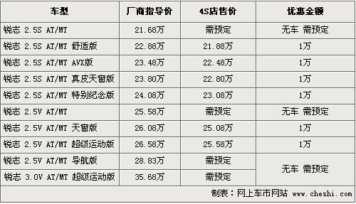 锐志是一汽丰田非常热销的一款后驱中级轿车,自上市到现在,无论从性能还是外观方面都得到消费者的认同,尤其是潜在的改装魅力让很多喜欢漂移的车友非常钟情于锐志。目前锐志优惠现金1万元,有部分现车供应,具体行情如下: