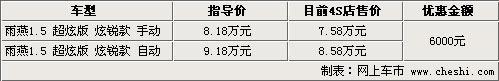 长安铃木雨燕以其圆润优雅的外形,逐渐受到了消费者的青睐,新雨燕自从上市以来,其销售情况一直比较稳定。由于排放问题的影响,因此1.3L雨燕在北京市场上已经不再销售。目前在北京市场上,购买长安铃木雨燕1.5L超炫版炫锐款可以得到6000元的优惠。具体车型详见下表: