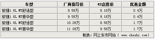 据北京地区华晨中华汽车4S店销售人员介绍,骏捷1.8L目前现车都比较齐全,而且优惠幅度较大,维持在1.7万元左右。同时购买骏捷1.6L车型也可优惠现金4000元,相当的超值。另外,如果到店详谈,还可以赠送部分装饰。