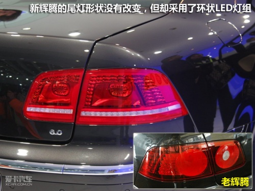 W12版新辉腾在车头部与尾部都配备了探测雷达,配合自动车距调节系统(ACC)可以让车辆与前车自动保持适当的距离。新辉腾的排气管与后杠融为一体,W12版车型的四排气管设计显得比低调的老款车型霸气许多。尾灯也做了适当的修改,改为了大众统一风格的LED灯组。