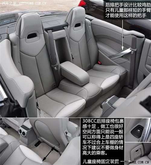 308CC继承了307 CC的空间设计,可以称得上是一款标准的四座硬顶敞篷轿车,不过在闭合硬顶的时候后座只适合中等身材以下的乘客乘坐。对于这种个性轿车能够顺利容下四个人我们已经感到欣慰了。