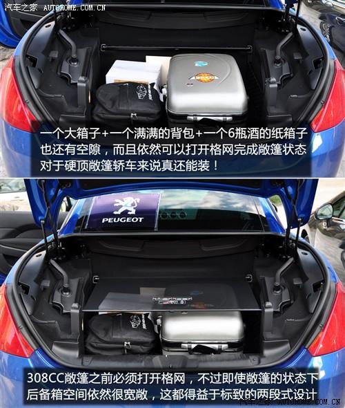 至于后排只有尾部空调下面的小储物格可以使用,水瓶类的东西后排乘客全靠手持,但是这对于一款硬顶敞篷轿车这可能已经是极限了,在这方面我们也只能表示理解,但是不表示满意,毕竟喜欢标致CC的朋友不会在意这些的,不过后备箱的设计是308CC的一个亮点,敞篷状态下308CC的行李箱容积为226升,轿车状态下更是达到了430升。