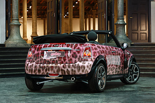 宝马Mini与欧洲最大的慈善活动之一“生命之球"(Life Ball)慈善机构晚会再次合作,推出了一款特别定制的Mini Cooper敞篷版,这款特别版车型是按照Kate Perry的服装款式所设计的,如今这款特别版车型在奥地利首都维也纳亮相了,粉色和黑色的豹纹外观吸引了不少观赏者的驻足。