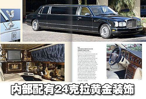 除了以上这款豪华车外,迈克尔·杰克逊还拥有一台1990劳斯莱斯银刺二代,该车采用了白色真皮与黑色织物强烈对比的装潢。黑色的车窗用白色的窗帘作为装饰,此外还有一个功能齐全的酒吧间。另外两款豪华车型分别为1988林肯Town Car以及1954凯迪拉克Fleetwood,这两款车型均采用了极为精致的装潢。