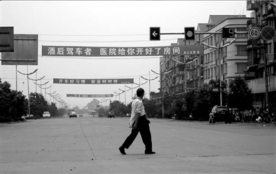 进入夹江城区,主要街道上随处可见禁止酒后驾车的宣传横幅。其中,县城瓷都大道与迎春南路交会处的两条标语尤为醒目,上面分别写着“酒后驾车者医院给你开好了房间”“酗酒开车是驶向死亡与坟墓的选择”等警示内容。