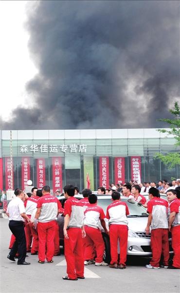 起火后,有人拨打电话报警。4S店的一名工作人员称,起火时,大家都忙作一团,将紧邻起火点的一些办公室内的电脑和文件全都“抢救”了出来。事故发生后,亚运村、奥运村和清河3支消防中队的12辆消防车赶到现场扑救。一个多小时后,大火被扑灭。