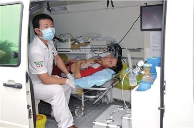 昨天下午,在北医三院的急诊大厅内,伤者沙先生正坐在走廊的休息椅上,一手打着点滴,一手支着头,显得非常疲惫。