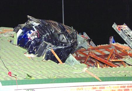 据英国媒体报道,澳大利亚悉尼市郊区10月19日发生了一起离奇的交通事故,一辆疾驶中的汽车突然失控,在飞越了几十米后砸烂了一处平房的屋顶,屋内一家三口侥幸逃脱。