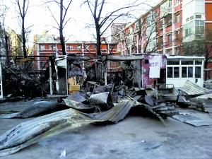 记者看到,这名女员工正和四名同事一起清理现场,他们面对的是3间几乎被烧成了黑色空壳的操作间。一名男员工使劲地用铁棍撬开了已经被烧得变形的保险柜,从中取出了账本和票据。其他员工则将冰面上一个个被烧得扭成S形的彩钢板搬到旁边的空地上。
